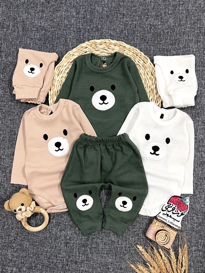 - 🍓جنس: بیسکویتی پنبه 🍓حدودسنی: نوزادی تا ۲ سال 🍓سایز۱: پهنا۲۱_قدبادی۳۶_قدشلوار۳۳ 🍓سایز۲: پهنا۲۳_قدبادی۳۹_قدشلوار۳۴ 🍓سایز۳: پهنا۲۵_قدبادی۴۲_قدشلوار۳۹ 🍓سایز۴: پهنا۲۸_قدبادی۴۵_قدشلوار۴۵