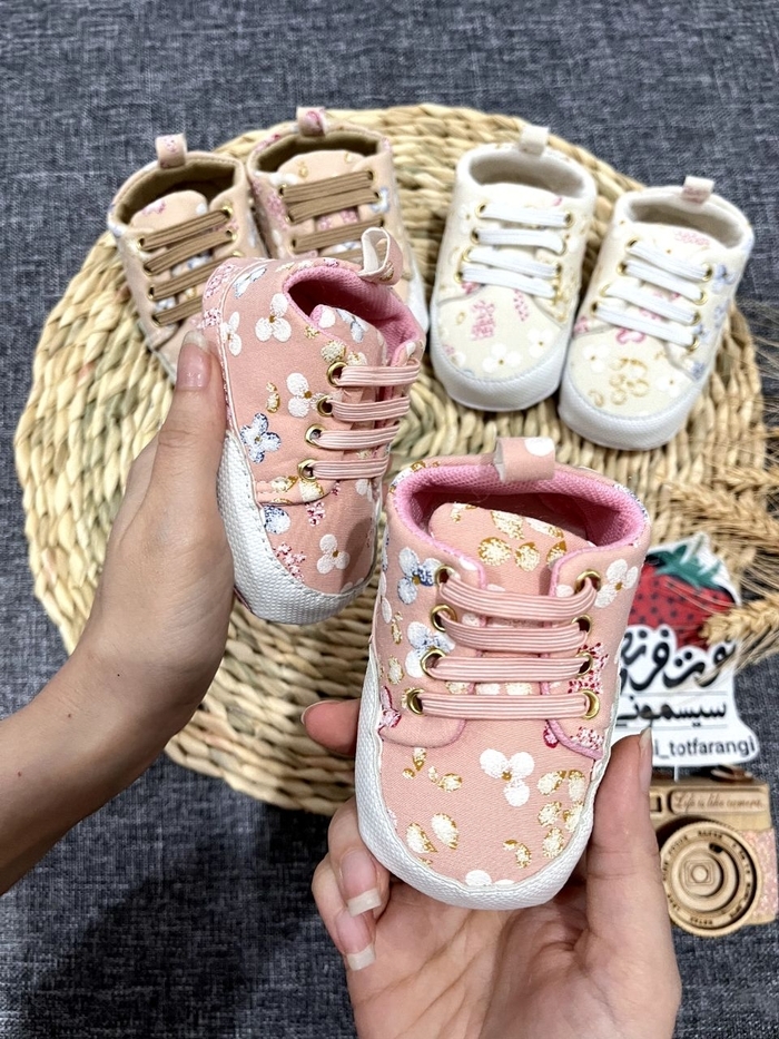 - 🍓جنس: پارچه و فوم 🍓حدود سنی: نوزادی تا یکسال 🍓سایز۱۱: کف پا ۱۱ / سانت حدود ۰تا۶ ماه 🍓سایز۱۲: کف پا ۱۲ سانت / حدود ۶تا۹ ماه 🍓سایز۱۳: کف پا ۱۳ سانت / ۹تا۱۲ ماه