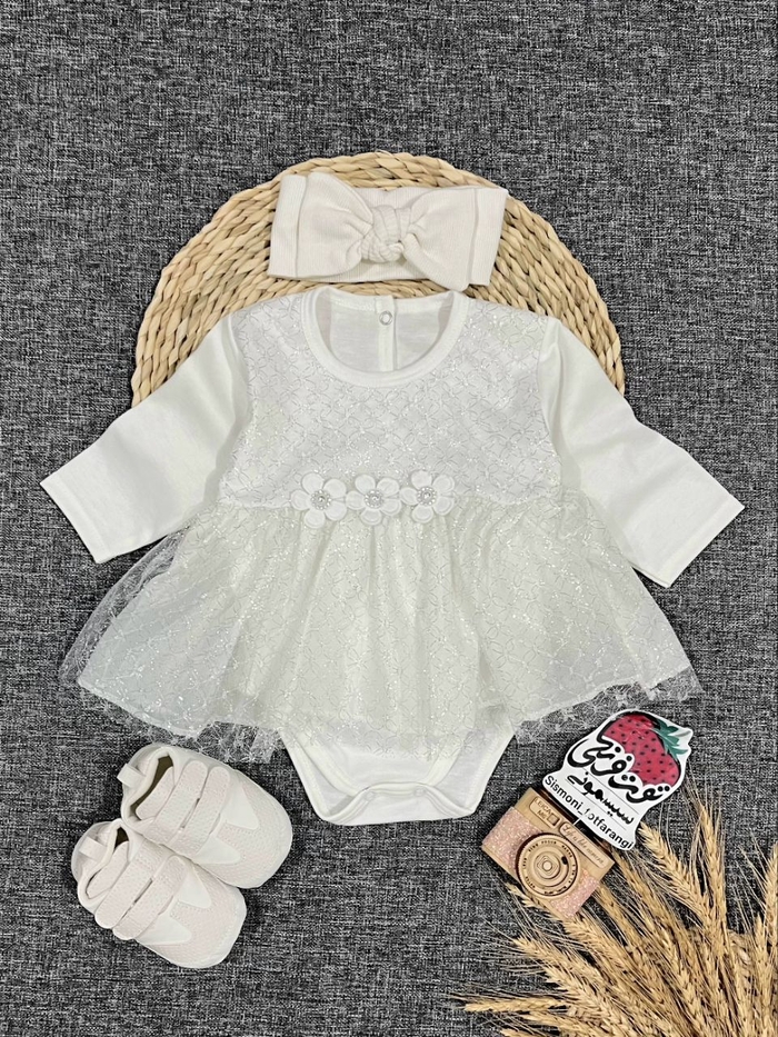- 🍓جنس: نخ پنبه و تور نرم 🍓حدودسنی: نوزادی تا ۹ ماه 🍓سایز۲: پهنا۲۴_سرشانه تا فاق۳۸ 🍓سایز۳: پهنا۲۵_سرشانه تا فاق۴۲