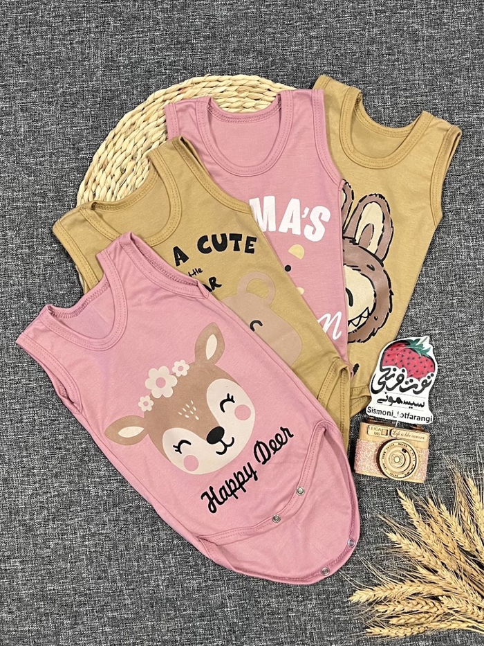 - 🍓جنس: نخی 🍓حدود سنی: نوزادی تا ۲ سال 🍓سایز۱: پهنا۲۰_سرشانه تا فاق۳۸ 🍓سایز۲: پهنا۲۱_سرشانه تا فاق۴۱ 🍓سایز۳: پهنا۲۳_سرشانه تا فاق۴۲ 🍓سایز۴: پهنا۲۴_سرشانه تا فاق۴۴ 🍓سایز۵: پهنا۲۵_سرشانه تا فاق۴۸ 🍓سایز۶: پهنا۲۷_سرشانه تا فاق۵۰