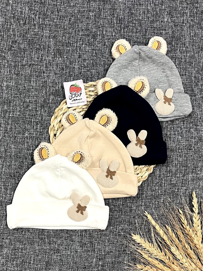 پنبه دو لایه 🍓حدودسنی: نوزادی تا ۱/۵ سال 🍓سایز۱: دور سر ۳۴ / ارتفاع ۱۳ 🍓سایز۲: دور سر ۳۶ / ارتفاع ۱۵ 🍓سایز۳: دور سر۴۰ / ارتفاع ۱۷ 🍓دور سر تا ۲، ۳ سانت کشسانی دارد 📍: سن حدودی ذکر شده، برای ثبت اندازه ها با سانت چک شود.