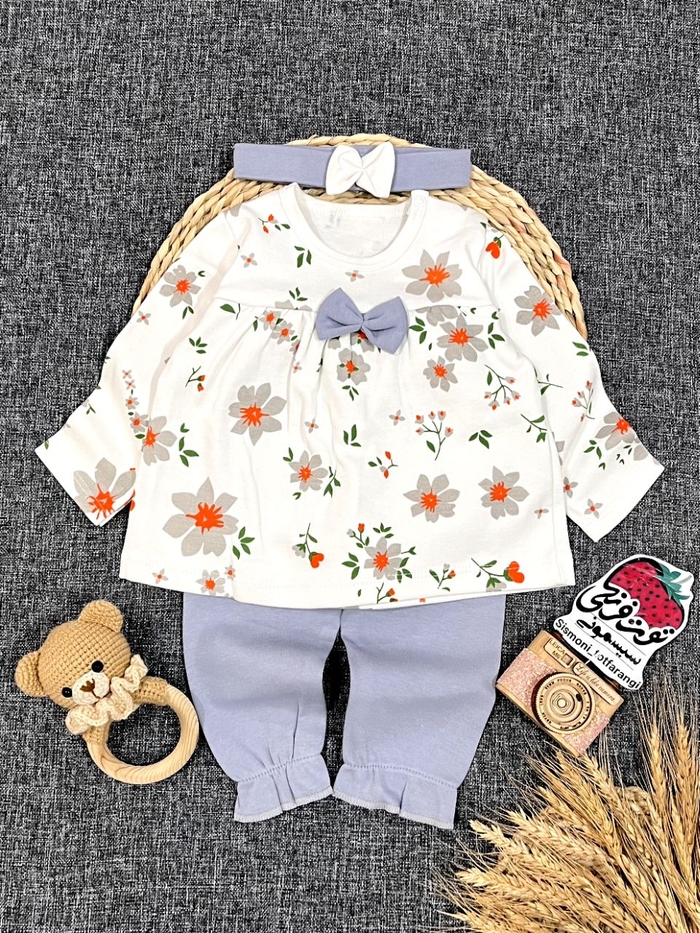 سه تیکه بلوز شلوار هدبند گل کد ۱۰۶۱