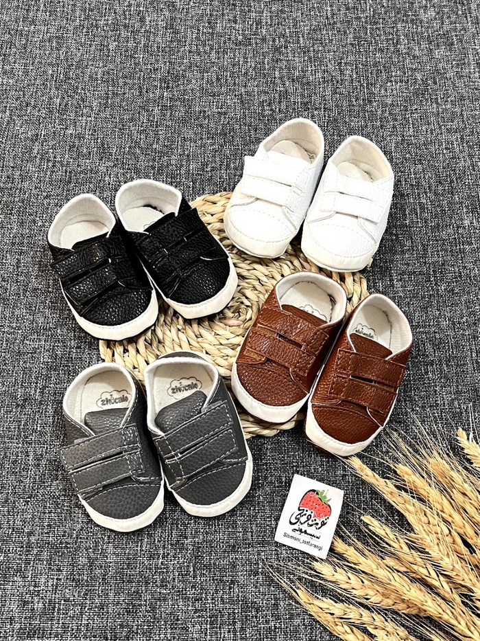 چرم و فوم 🍓حدود سنی: تولد تا یکسال 🍓سایز ۱: کف پا ۱۱ سانت 🍓سایز ۲: کف پا ۱۱/۵ سانت 🍓سایز ۳: کف پا ۱۲ سانت 📍: سن حدودی ذکر شده، اندازه ها با سانت چک شود.