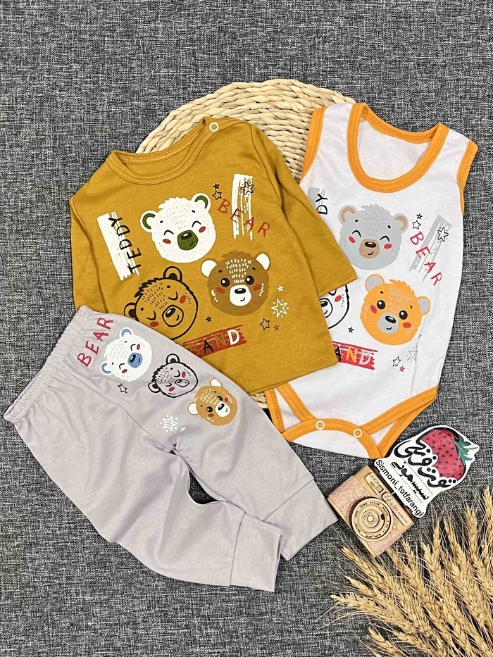 نخی 🍓حدودسنی: تولد تا ۹ ماه 🍓سایز۱: پهنا۲۰_قدبلوز۲۸_قدبادی۳۷_قدشلوار۳۵ 🍓سایز۲: پهنا۲۳_قدبلوز۳۱_قدبادی۴۰_قدشلوار۳۷ 🍓سایز۳: پهنا۲۴_قدبلوز۳۴_قدبادی۴۳_قدشلوار۴۱ 📌توضیحات : سن حدودی ذکر شده،برای ثبت سفارش اندازه ها با سانت چک شود.