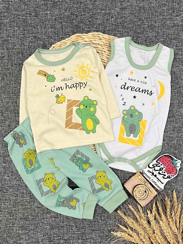 نخی 🍓حدودسنی: تولد تا ۹ ماه 🍓سایز۱: پهنا۲۰_قدبلوز۲۸_قدبادی۳۷_قدشلوار۳۵ 🍓سایز۲: پهنا۲۳_قدبلوز۳۱_قدبادی۴۰_قدشلوار۳۷ 🍓سایز۳: پهنا۲۴_قدبلوز۳۴_قدبادی۴۳_قدشلوار۴۱ 📌توضیحات : سن حدودی ذکر شده،برای ثبت سفارش اندازه ها با سانت چک شود.