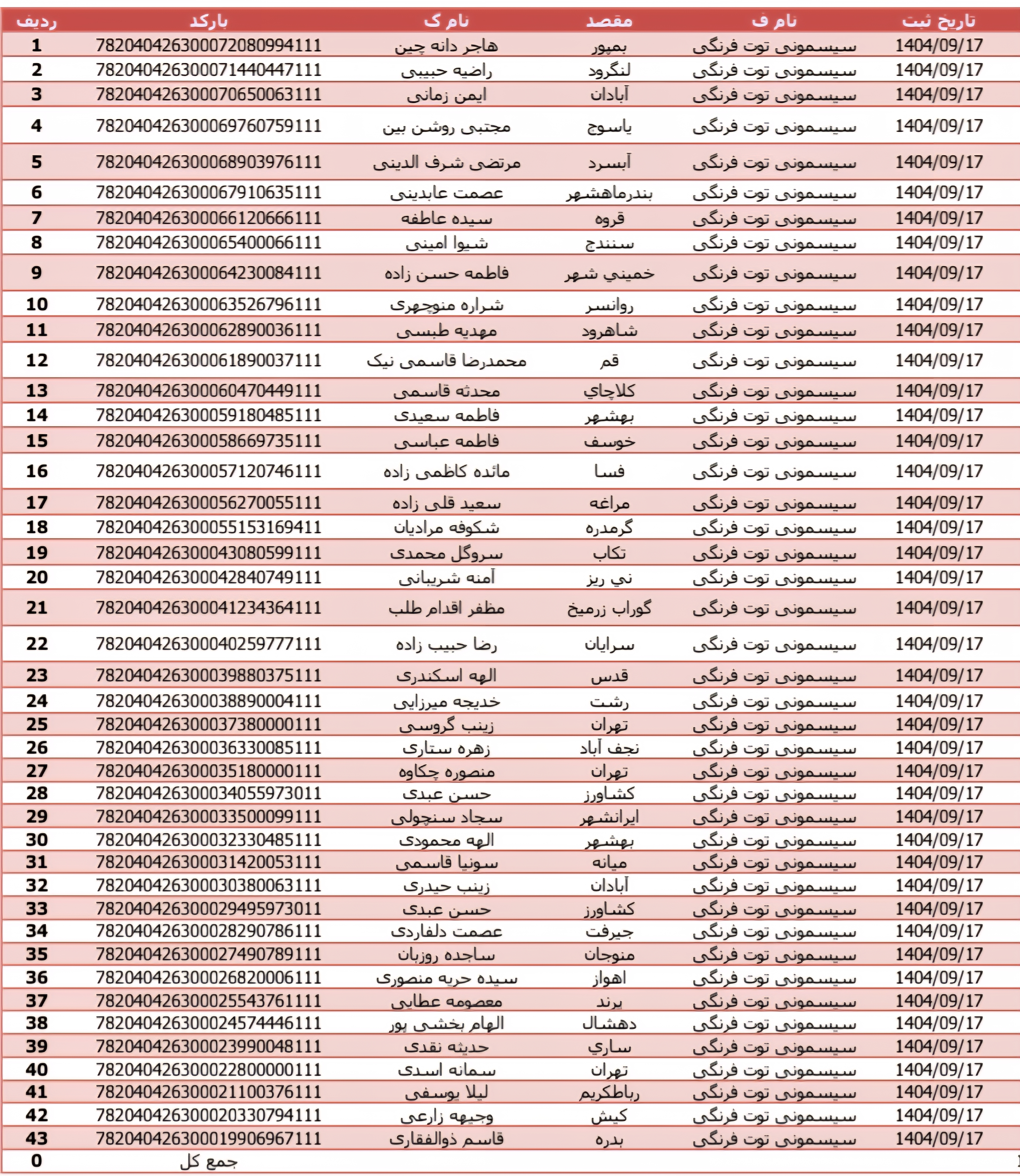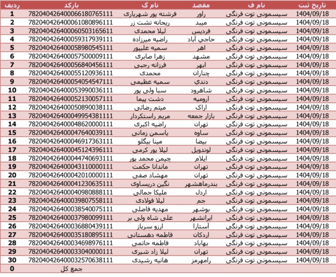 تاریخی که نوشته شده تاریخ ثبت اداره پست میباشد نه تاریخ ثبت شما، کدهای شما ۱ الی ۳ روز کاری بعد ثبت بارگذاری میشود، برای اطلاع از تایم رسیدن از کد پیگیر باشید🍓
